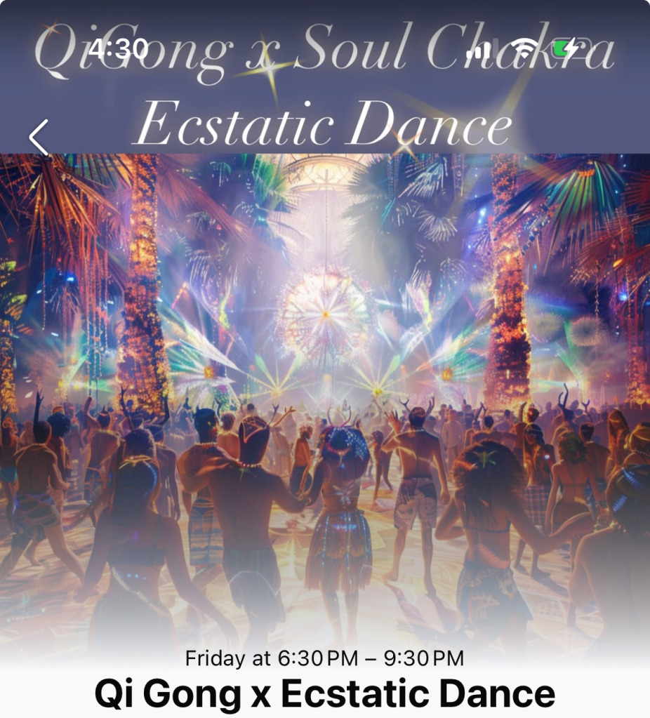 Qi Gong and Soul Chakra Ecstatic Dance are combining forces to create an energetic night of harmonizing movement, freedom and fun!